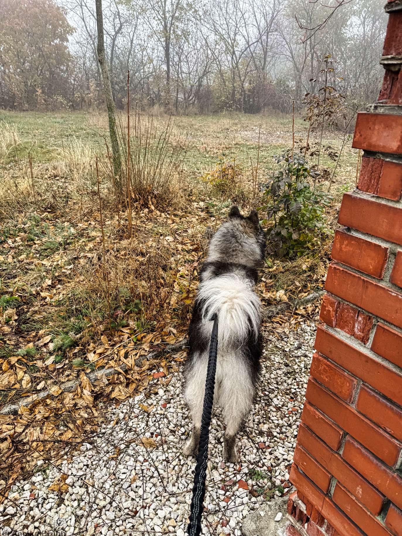 Q und ich sind zeitig aufgestanden, aber was ist das? Wir sehen unseren Turm gar nicht – so neblig ist es hier. Das ist ja was. Leider ist es dadurch auch ziemlich ungemütlich und klamm. Na ja, dennoch sind wir unsere Runde spaziert.